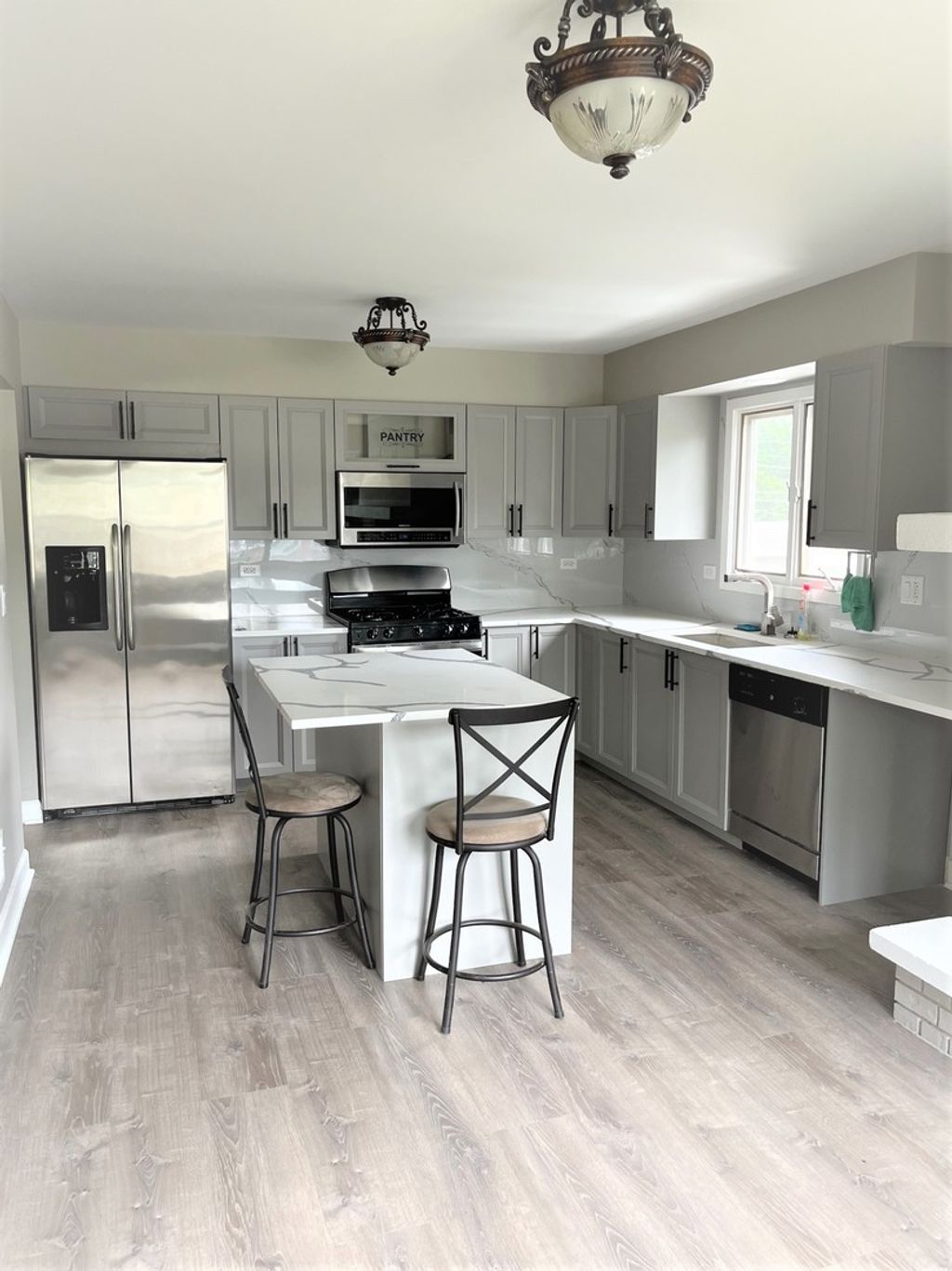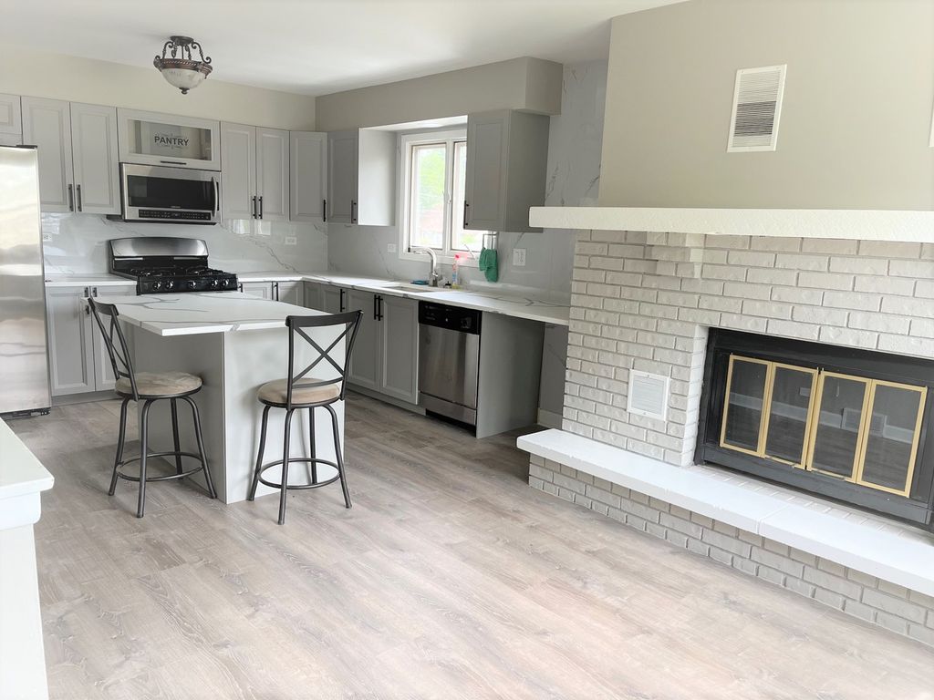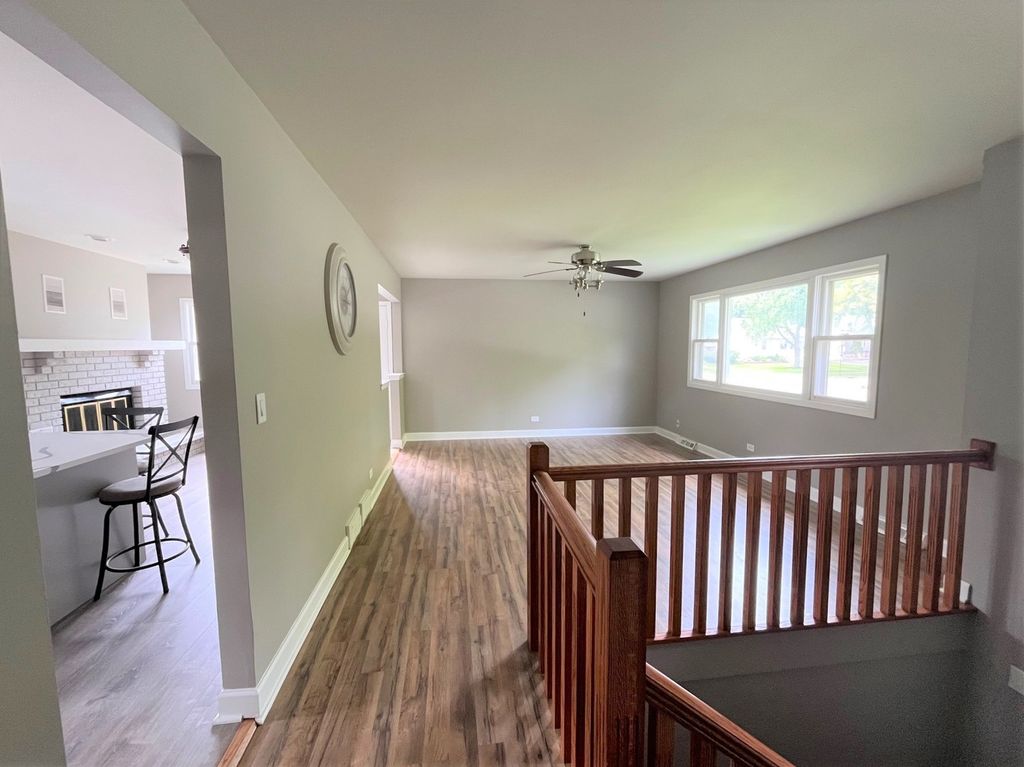 UPDATED AND READY FOR IMMEDIATE OCCUPANCY, BI LEVEL STYLE WITH ATT GARAGE ON A CORNER LOT. FRESHLY PAINTED T/O, NEW WOOD FLOORING T/O. UPDATED BATHS. REMODELED KIT W/NEW CABINETS, GRANITE COUNTER-TOPS, SS APPLS, ISLAND, FIREPLACE AND WALK OUT TO DECK. NEW DOORS T/O, CEILING FANS IN ALL BEDROOMS. MASTER BR W/PRIVATE BATH. LOWER-LEVEL FAMILY RM W/FIREPLACE, HALF BATH AND WALK OUT TO EXTERIOR. NEWER FURNACE AND HOT WATER HEATER. CLOSE TO MAJOR ROADS, SHOPPING, TRAIN, SCHOOLS AND MORE.